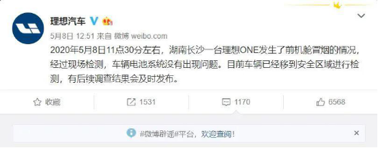 今年5月,湖南长沙一台理想one在马路旁发生了自燃。就曝光画面来看,车体上的明火肉眼可见。而在理想汽车官方微博解释中,却轻描淡写为“冒烟”,引发了网友们的冷嘲热讽。