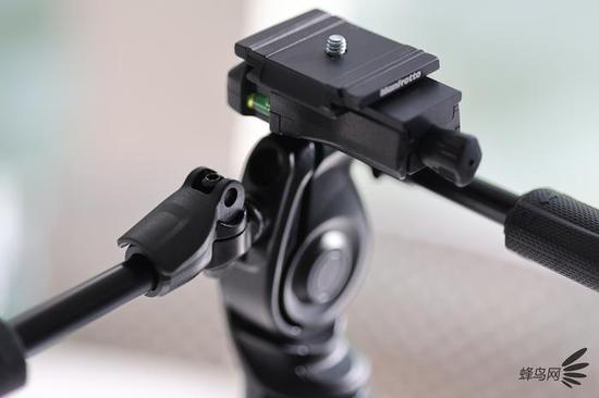 此外,这款三脚架还具有可调校的水平中轴功能,可以快速的调校水平中轴使拍摄时更容易找到合适的拍摄角度,其具有锁定左右遥摄位置、旋转可调节和锁定水平中轴位置,这个位置还设计了气泡式水平仪,方便用户调整位置。长全景手柄、支持竖拍和3个气泡水平仪完全保证可实现精确拍摄和多功能。