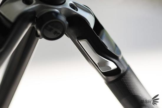 而在另外一个脚管上,还是采用了曼富图三脚架经典的设计,产品名称/产地信息、SN编码以及具体的型号等信息,用户可以一目了然的了解到。