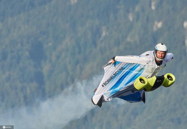 在阿尔卑斯山上空,Peter Salzmann穿着它进行了飞行表演,其目的是宣传宝马自身的纯电动技术,当然这也开辟了翼装飞行的新时代。