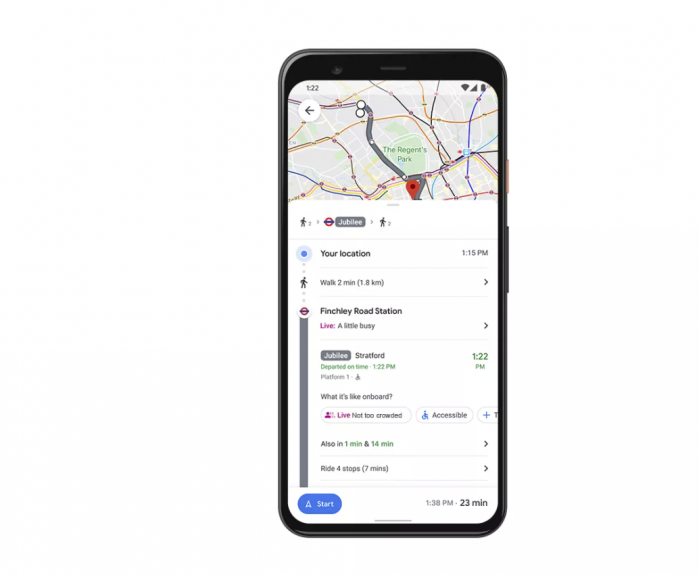 谷歌地图继续改进公共交通拥挤程度信息功能,可以实时向用户显示公共交通的拥挤程度,方便用户避开某条特定的火车或公交线路,以保持社交距离。它使用了谷歌地图用户反馈,支持安卓和iOS版本谷歌地图。