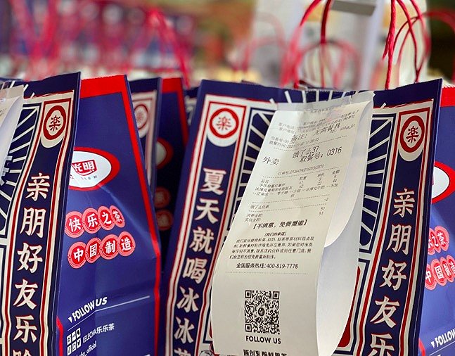 乐乐茶外卖的冰博克订单。(图片拍摄:赵晓娟)