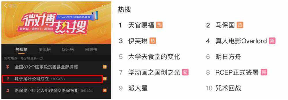 马保国不仅上了微博和B站的热搜,他说的“年轻人不讲武德” “好自为之”也成了网上“热词”,有人还把 “耗子尾汁”注册了公司、申请了商标,马保国在保镖的簇拥下出席了网红活动,他还宣布将参加电影拍摄……在这个过程中,马保国赚足了流量、赚取了收益,俨然成为火遍全网的新晋网红。