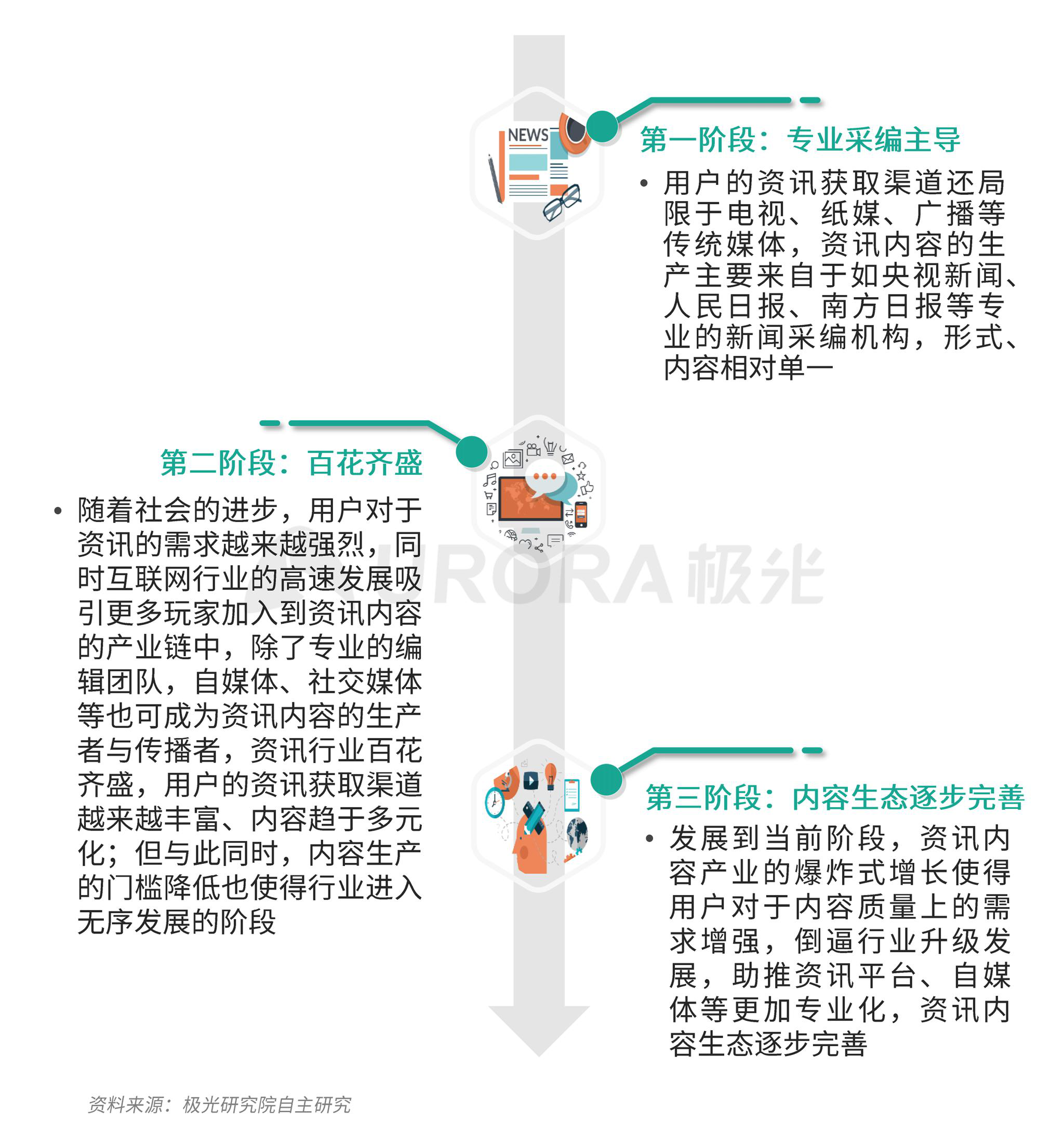 资讯内容从最初单一的专业采编发展成百花齐盛的生产模式,现阶段内容生态正在逐步完善
