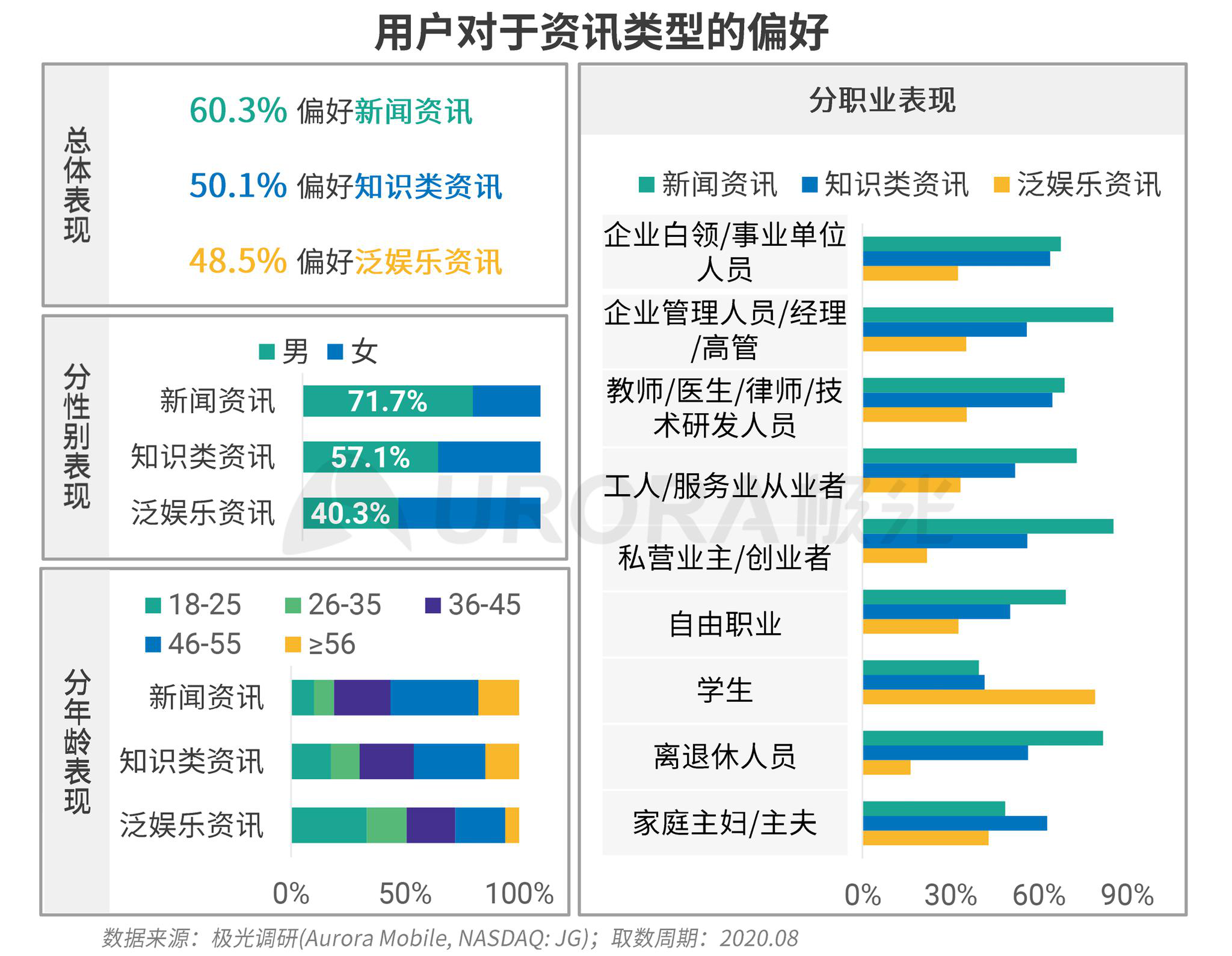 不同群体对新闻资讯及泛娱乐资讯的偏好差异明显,知识类资讯的圈层覆盖面相对更广