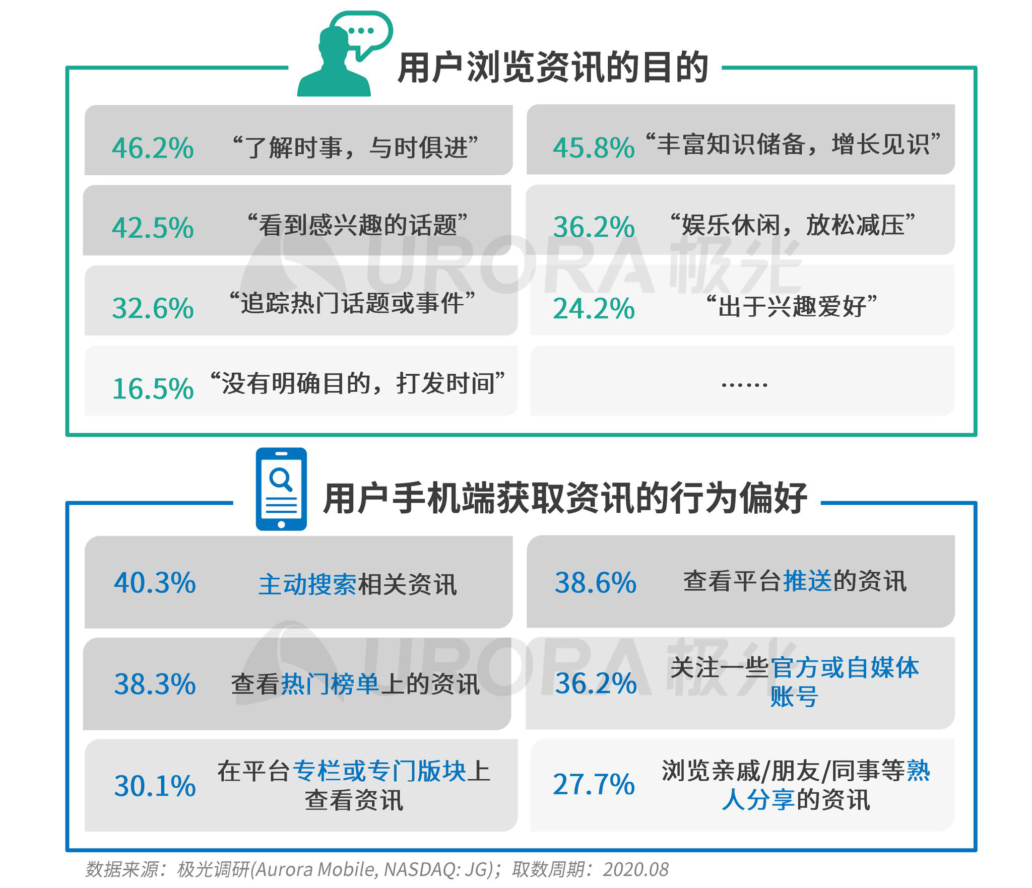 了解时事、丰富知识面是用户浏览资讯的主要目的,四成用户倾向通过搜索来获取资讯