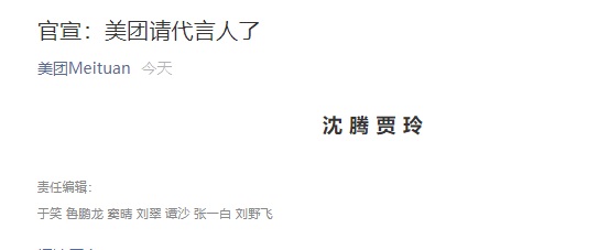 值得一提的是,美团官宣只有四个字的文案,居然用了七位编辑。