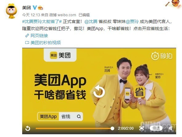 原标题:美团官宣代言人沈腾贾玲 13个字用七位编辑引发关注