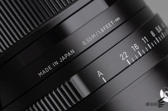 适马65mm F2 DG DN|Contemporary仍然采用了手动光圈环设计,转动光圈时伴有“咔咔咔”的声音,据说这种声音是经过适马工程师特殊调教的,非常的悦耳。并且手动光圈上海设计了A档,稍微用力一点即可转动到A档,这里适马并没有专门为这支镜头设计一个光圈环的锁定拨杆,另外对焦环的宽度比光圈环要稍宽一些,两个环的手感都非常舒适。而且在手动光圈环和对焦环之间适马还颇有设计感,在这里设计了一个金属切割的凹槽,并在这里标准了Made in Japan以及最近对焦距离的标识。