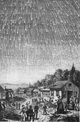 展现1833年狮子座流星雨盛况的版画,绘于1889年。