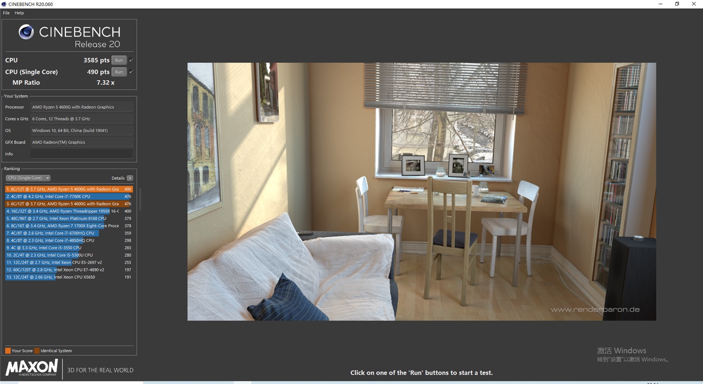 R5 4600G 单核 490 分,多核 3585 分,基本上与R5 3600 一个水平。