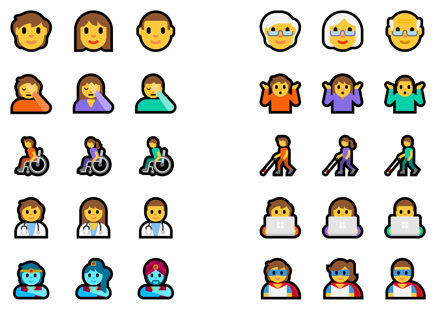 你还会发现微软对他们现有的表情符号做了一些调整,以提高跨平台的一致性。