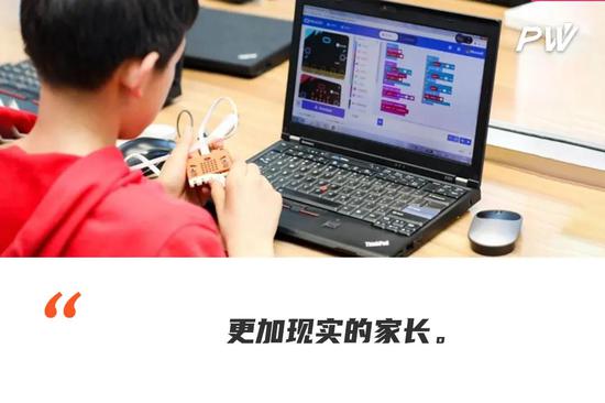 与身在二线城市的瑶瑶妈不同,定居深圳的嘉文早就为自己的儿子报名了少儿编程培训班,到如今已经有接近一年的时间了。历来一样新兴事物都是从一线城市发展起来,再辐射到其他省市,少儿编程自然也不例外。而深圳的另一个特殊性在于,有腾讯等互联网大厂坐镇,那些没体验过程序员996加班、写代码写到头秃的家长们,只看到互联网从业者光鲜亮丽的一面,也想让自己的孩子借由编程搏一个好未来。在停掉其他兴趣时,瑶瑶妈也不是没有犹豫,但后来她想通了——“以后也不靠这些本事吃饭”。