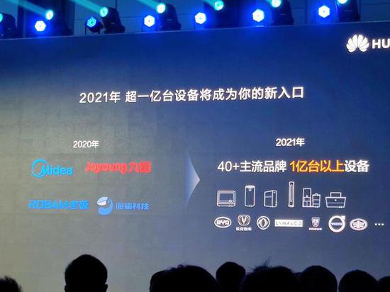 王成录表示,今年已有美的、九阳、老板电器、海雀科技的设备搭载鸿蒙OS,而2021年,鸿蒙OS要覆盖40+主流品牌1亿台以上设备。(张俊)