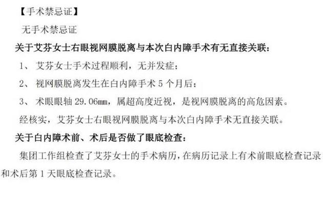 1月4日凌晨5点,爱尔眼科在官方微信公众号及微博平台发布了一则 《爱尔眼科医院集团关于艾芬女士诊疗过程的核查报告》中认为,“经核实,艾芬女士右眼视网膜脱离与本次白内障手术无直接关联”。