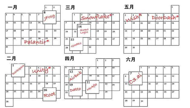 为了帮助读者预测股票价格的涨跌,我们准备了这个禁售期到期日历。由于许多公司根据各种因素(包括企业发布收益报告的时间)来确定禁售期到期日期,最终到期的时间可能相差很大。