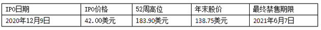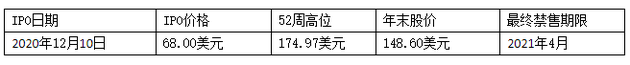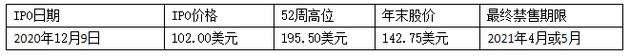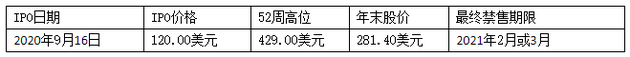 通过限制可购买股票的数量,禁售期可能会夸大热销股的初始涨幅。然而一旦这些限制失效,大量的股票就会流入市场,股价可能会应声下跌。典型的例子就是今年最热门的IPO之一Snowflake,该公司股价较发行价上涨了200%以上,在2020年12月初达到了429美元的高点。但2020年12月中旬第一阶段禁售期到期,狂热被冷却,此后该股呈下跌趋势,至周四收盘价281美元。