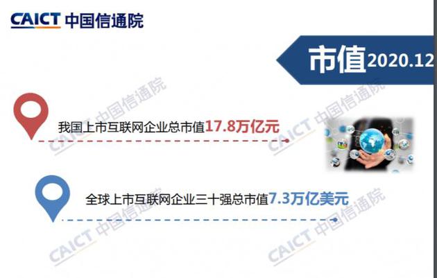 原标题:信通院:中国境内外上市的互联网企业总市值为17.8万亿元
