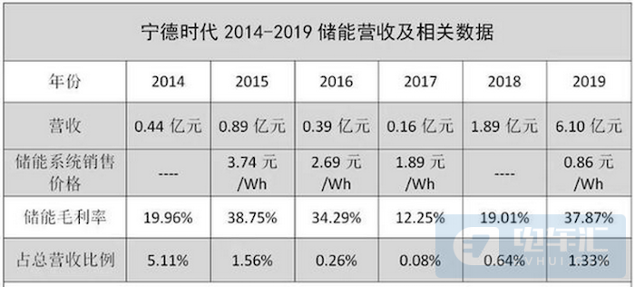 2014-2019这六年,CATL储能电池的营收在总营收比例占比分别为5.11%,1.56%,0.26%,0.08%,0.64%,1.33%,储能业绩起伏较大,这是在CATL动力电池业务快速发展过程中的营收占比,如果单看储能电池业务,营收从0.44亿元增长至6.1亿元,完全是在稳步增长的。