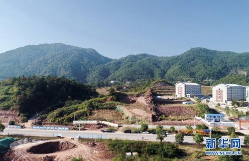 龙岩市上杭县临城镇龙翔村发现的大规模晚白垩世恐龙足迹群址(2020年11月9日摄,无人机照片 )。新华社发
