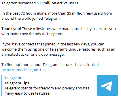 原标题:即时消息应用Telegram已拥有超过5亿活跃用户 来源:cnBeta.COM