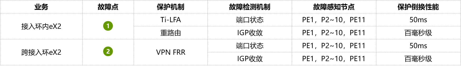 X2业务在图5所示的故障点中,触发的保护机制、检测机制、保护倒换性能总结见表2。