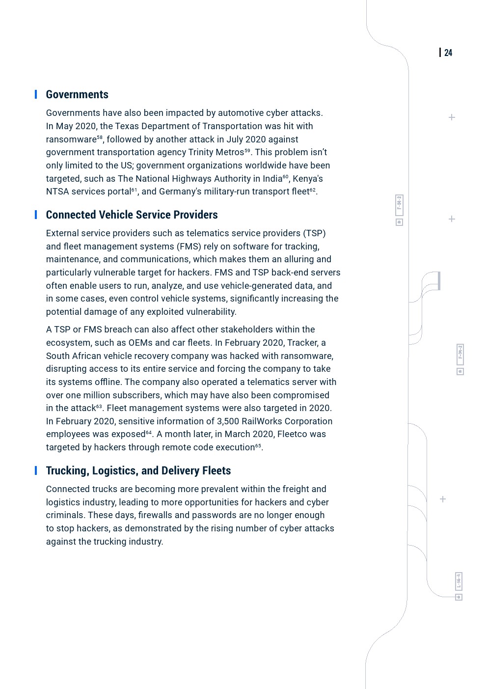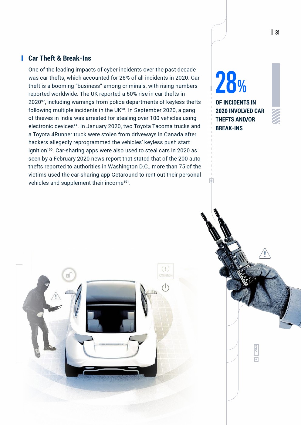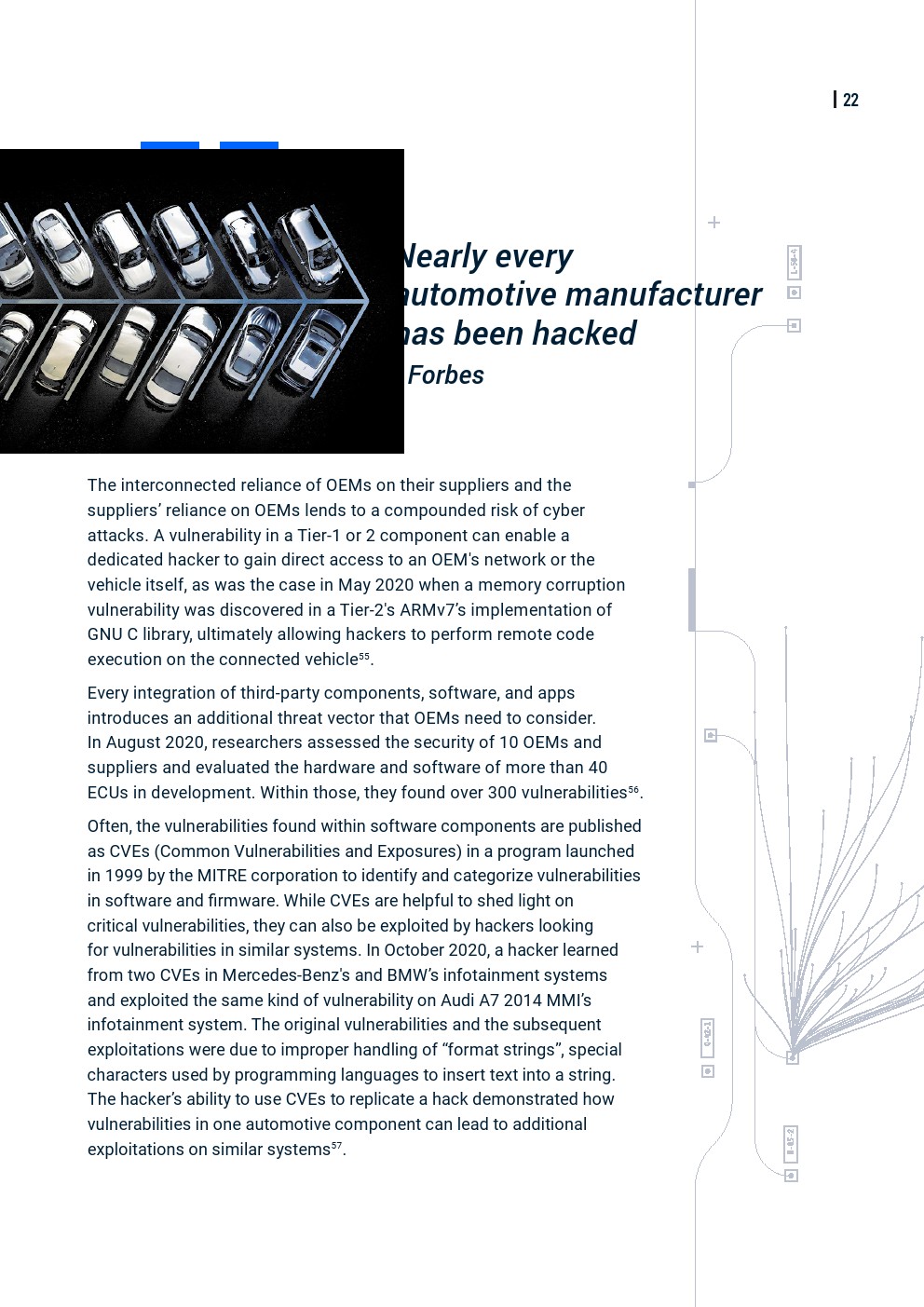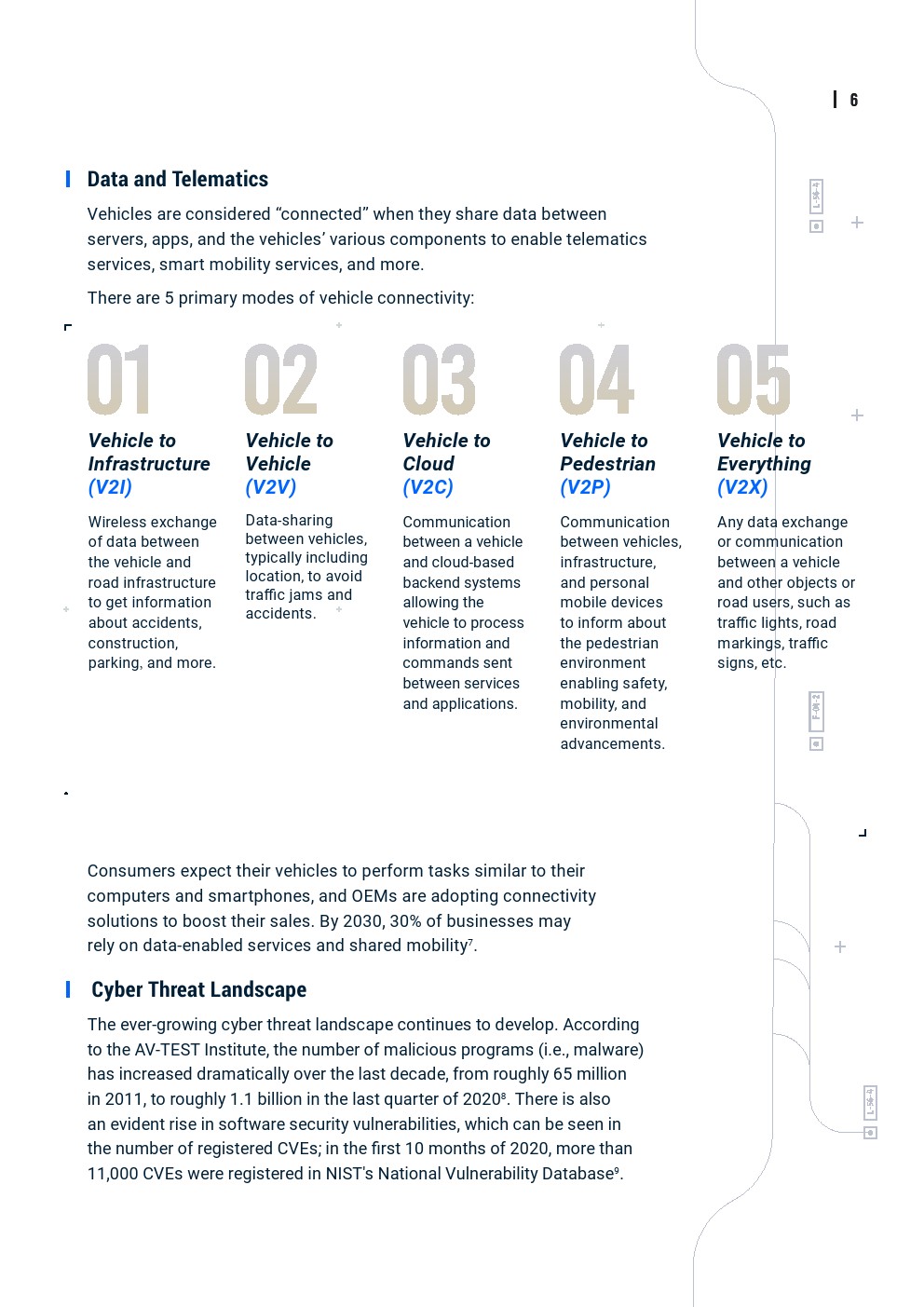 联网车辆的数量不断增加,再加上V2X技术,漏洞数量也增加了,黑客可以利用这些漏洞。勒索软件等传统形式的网络威胁,以及针对远程信息处理服务、车辆部件和车辆本身的更多针对汽车的威胁,导致最近针对汽车行业的网络攻击数量增加。