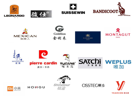 本次比较试验的样品由广西消委会的工作人员以消费者的身份从南宁、桂林、柳州、玉林、梧州等市各大商场、超市、店铺随机购买。样品品牌(标称)涉及意尔康、皮尔卡丹、梦特娇、金利来、HONGU、袋鼠、璐璐凯帝、优颂、唯加、LEONARDO、名将、骏仕、SATCHI、稻草人、CISSTEG、啄木鸟、小米、苹果、SUISSEWIN、SHINETOUR炫途等22个品牌,价格从199元到1100元不等。