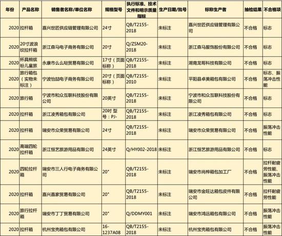 近日,浙江省市场监督管理局公布了12批次抽检不合格拉杆箱产品,涉及森马、凌秀等品牌,主要不合格项目包括标志、振荡冲击性能、拉杆耐疲劳性能等。
