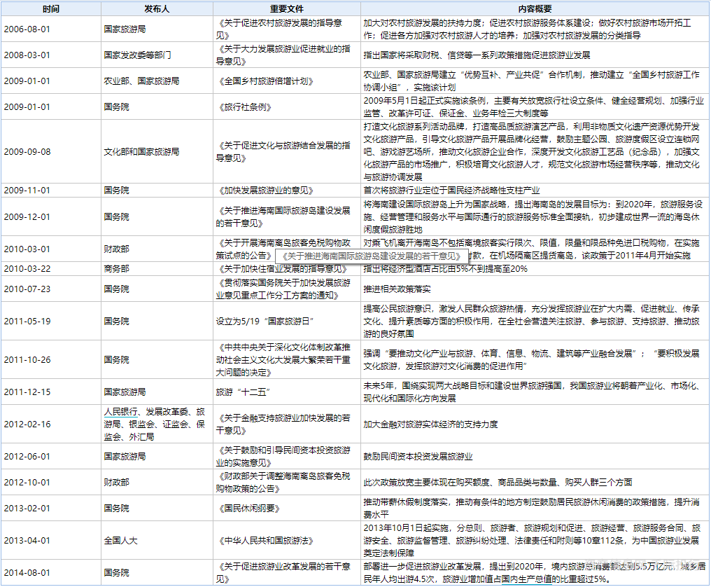 我国政府目前的经济政策也在大力鼓励旅游经济的发展,国家制定与旅游业相适应的法律法规政策不断完善。产业政策支持可以有效推动旅游行业的发展。
