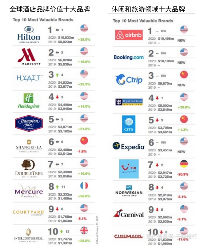 图2020全球酒店品牌价值和休闲旅游品牌排行榜