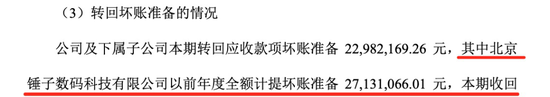 1月25日晚间,蓝思科技公告显示,锤子科技以前年度全额计提的坏账准备2713.11万元在2020年收回1134.63万元。