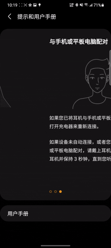 使用耳机的第一件事肯定是配对,打开设备蓝牙,戴上耳机按照如图所示长按两个耳机3秒即可,很方便。