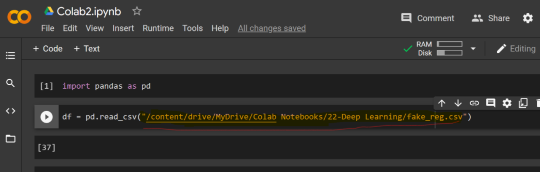 从 Google Drive 云端硬盘读取 CSV 文件非常容易,你可能在 Google Drive 云盘上为 notebooks 或数据文件创建或指定了文件夹。或者你将数据自动上传至创建的文件夹「drive/MyDrive/Colab Notebooks」。