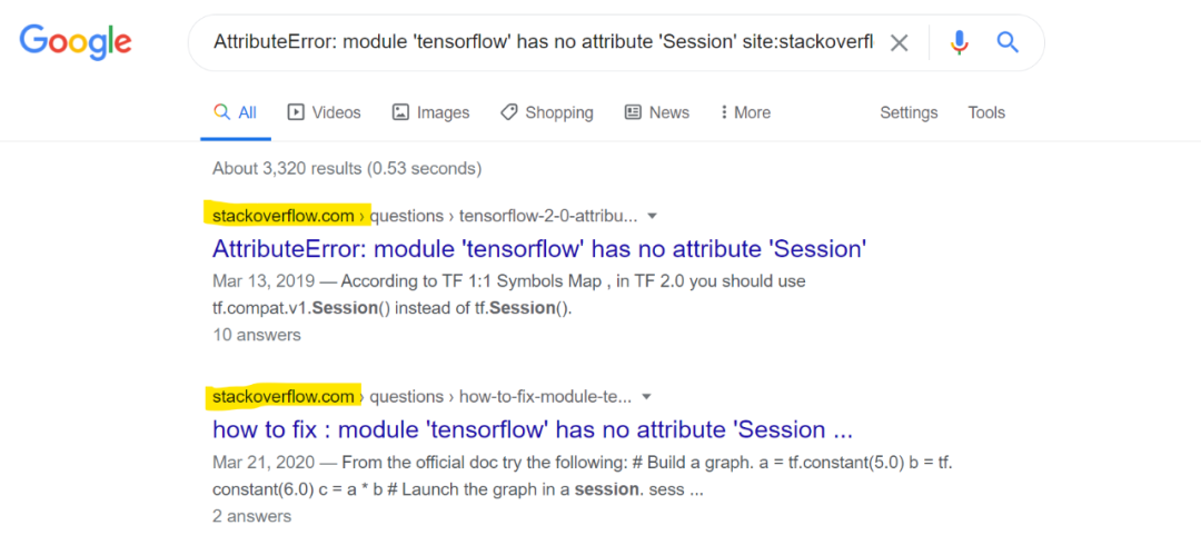 在进行深入研究时,你难免要用到 Google。这时,你可以在页面搜索解决方案,然后返回到浏览器上的 Google Colab 标签。