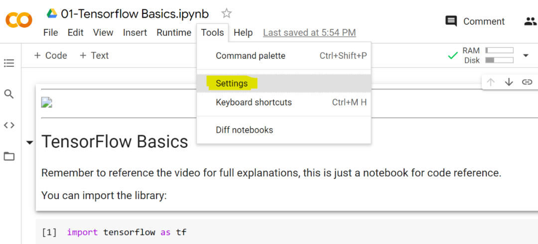 如果开发者想使用 Google Colab 的暗黑模式,请点击「Tools」选项卡,然后按照下图所示的步骤进行设置。