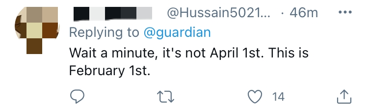 “等一下,今天不是4月1日(愚人节),今天是2月1日。”