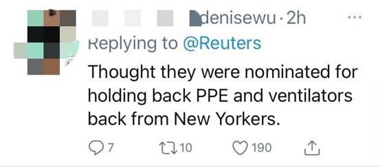 “我以为他们是因为不给纽约人发防护服和呼吸机提名的呢”