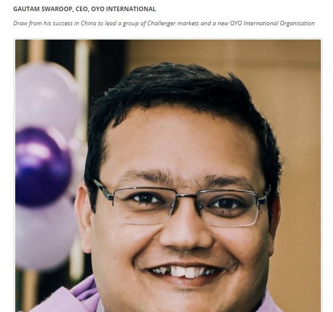 2020年5月,环球旅讯曾报道,OYO已任命Gautam Swaroop为OYO酒店中国CEO,社交网络公开资料显示,此人曾是印度跨国制药公司瑞迪博士的负责人,也曾在国际咨询公司麦肯锡工作超过10年。