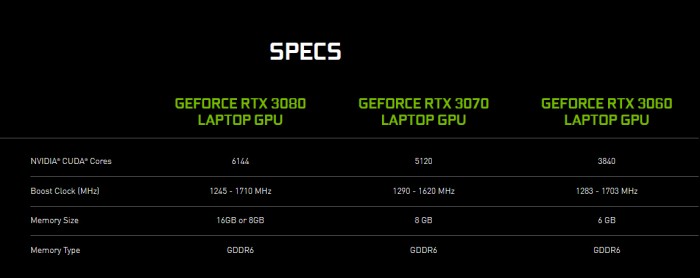 每一款RTX 30笔记本的显卡都可以自定功耗,由制造商决定。以前,如果是更轻更薄的游戏笔记本,会使用Max-Q显卡,比如GeForce RTX 2070 Max-Q,如果是高性能笔记本,显卡与台式机GPU更加接近,没有Max-Q标记。现在Nvidia移动显卡不再标注Max-Q,正因如此,当我们挑选RTX 30笔记本时就会感到很困惑。以前厂商如果在笔记中装入Max-Q显卡,会在笔记本贴有Max-Q标志,现在没有这样的要求了。