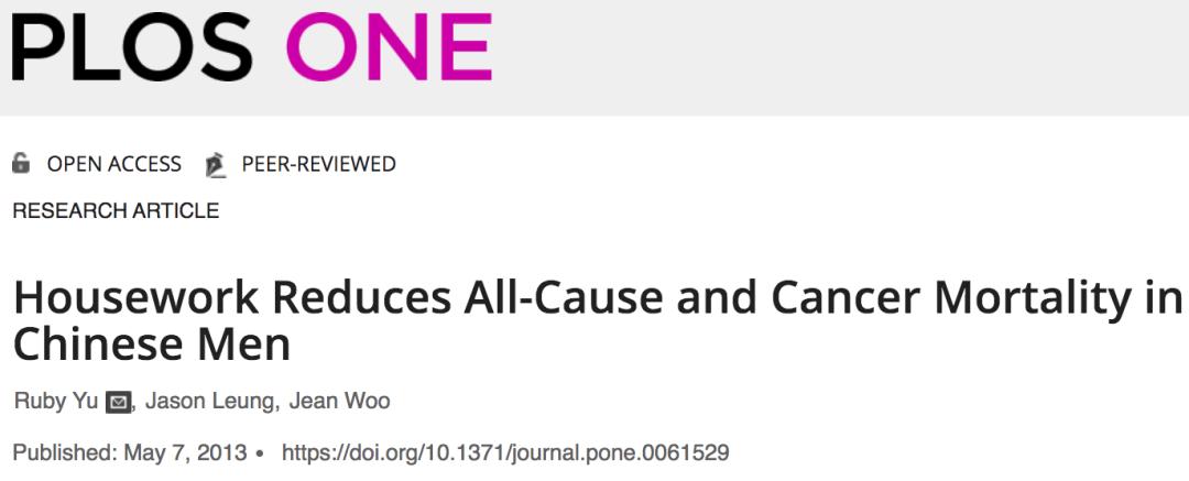 当然,做家务也分轻重。发表在Plos One杂志上的一项研究表明,重型家务和轻型家务对全因死亡率和癌症的影响是不同的。重体力家务可降低男性死亡风险。