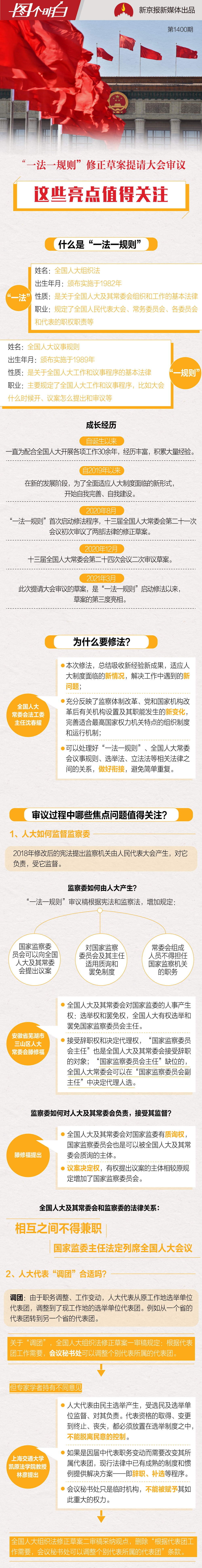 3月5日,十三届全国人大四次会议开幕,两部涉及人大组织制度、工作机制、运行模式的重要法律草案——全国人民代表大会组织法修正草案与全国人民代表大会议事规则修正草案(即“一法一规则”)“联袂上会”,提请大会审议。