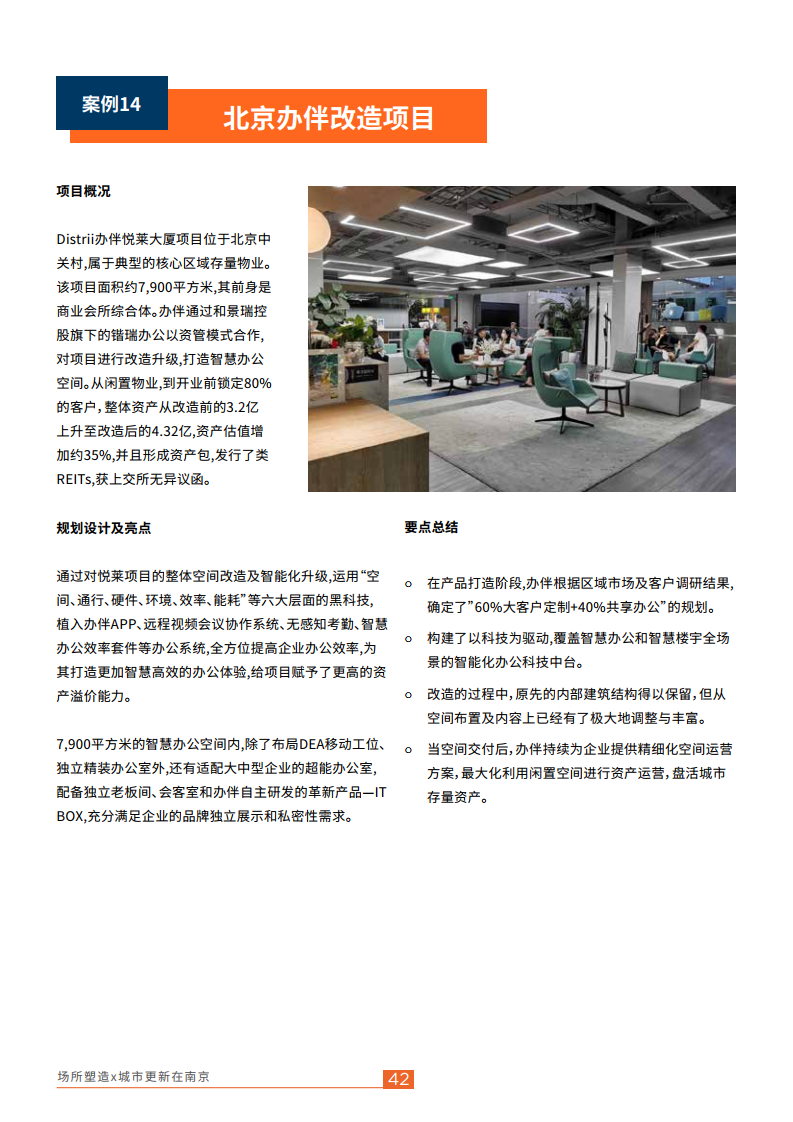 戴德梁行大中华区租户研究主管Shaun Brodie表示,中国城市更新从“大拆大建”的1.0时代走向了如今追求智慧、绿色、可持续的4.0时代,南京也不例外。南京市正逐步建成“创新名城,美丽古都”,在“人才大战”愈演愈烈的今天,有更多人愿意成为“新南京人”。如何进一步吸引更多顶尖人才扎根南京,不仅仅是户口、薪酬、房价的问题。让房地产有温度,让用户有“主人翁”意识和归属感是很重要的条件之一。