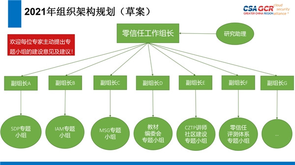 ● 组织建设,设立副组长和专题小组,把零信任扩展到更多场景和领域