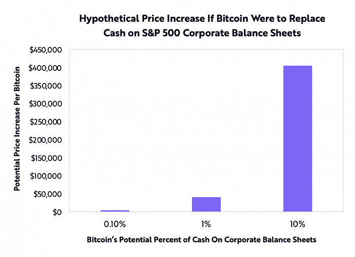 得益于机构对比特币日益浓厚的兴趣,Wood的方舟投资对今年比特币的预期非常乐观。根据方舟投资2021年的宏伟构想,如果标普500指数中所有的成分股公司都将1%的现金配置比特币,那么比特币价格可能会上涨约4万美元;如果这些公司将10%的现金配置比特币,那么该加密货币的价格将相应地上涨40万美元。