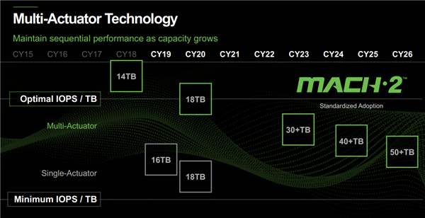 在未来,HDD硬盘也会大量使用MACH2技术,30TB是个开始,50TB问世的时候已经是标配了。