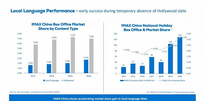 5.在好莱坞缺席的时间,本土语言电影表现优异,IMAX将会继续推进本地化策略。