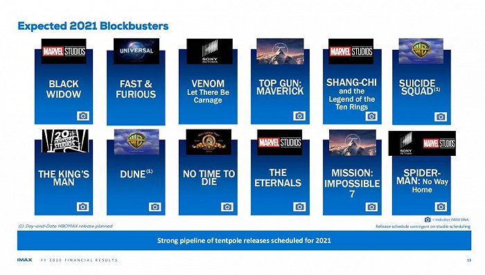 另外,好莱坞2021年的强势片单也给予了IMAX信心。2021年下半年,《速度与激情9》、《007:无瑕赴死》、《壮志凌云2:独行侠》、《碟中谍7》等经典好莱坞IP,另外漫威还有多部作品将会上映。根据亚洲市场的经验,Gelfond判断认为当疫情得到控制,人们渴望走出家门、重返电影院以获取优质体验,IMAX可以从这一潜在的需求中获得市场份额并迅速恢复盈利。