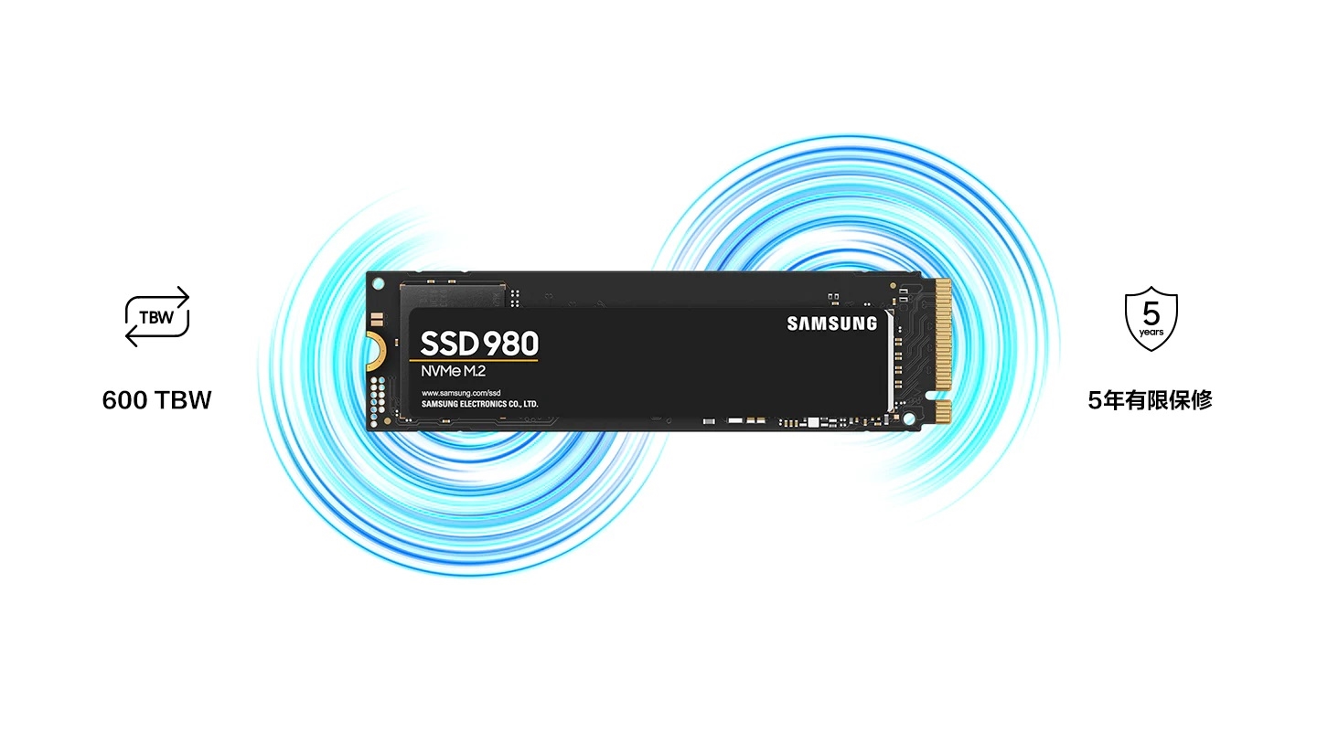 三星980 SSD是标准的M.2 2280形态,单面设计,支持PCIe 3.0 x4、NVMe 1.4,容量可选250GB、500GB、1TB,持续读写速度最高3.5GB/s、3.0GB/s,随机读写速度最高500K IOPS、480K IOPS。