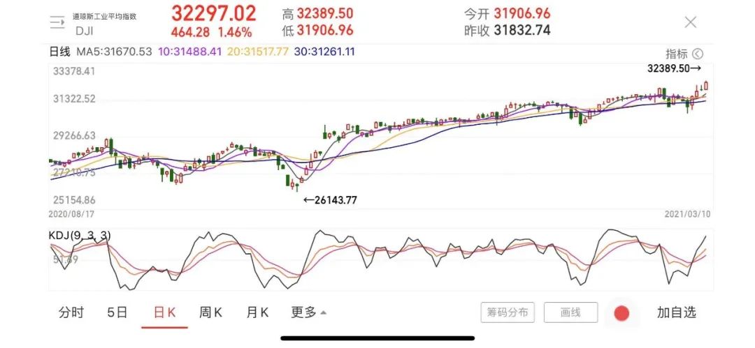 截至当地时间3月10日收盘,道指上涨464.28点或1.46%至创纪录的32297.02点。标普500指数上涨23.37点或0.6%至3898.81点,纳斯达克综合指数下跌0.04%至13068.83,不过盘中一度上涨1.6%。
